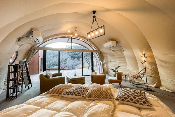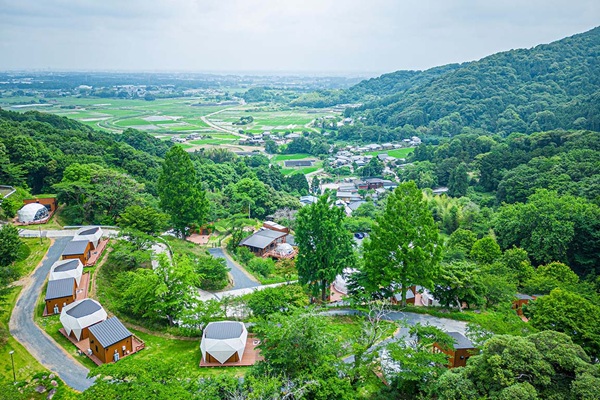 都心から近い茨城県土浦市の「グランピングヒルズ アウラテラス茨城」。