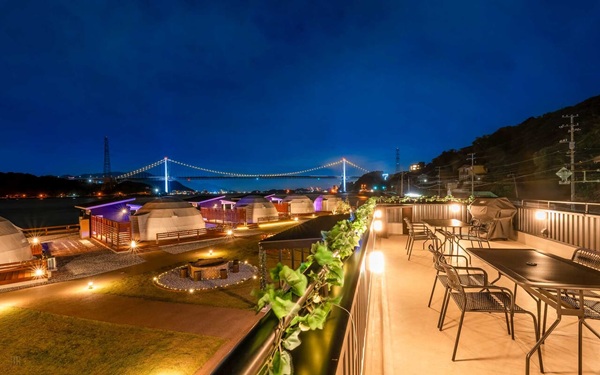 • 雰囲気・体験価値 : 関門海峡を間近に望むロケーションで、行き交う大型船や夜景・ライトアップが非日常感を演出。焚き火でマシュマロ、サウナ・プールなど“滞在体験”が豊富