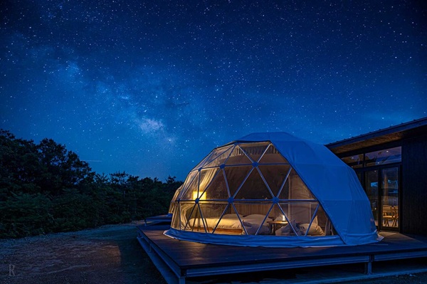 • チェックイン後に設備の説明を受けドームテントに入るとその面白さ、『映え』感には納得。充実のアメニティと清潔な設備にも感心した