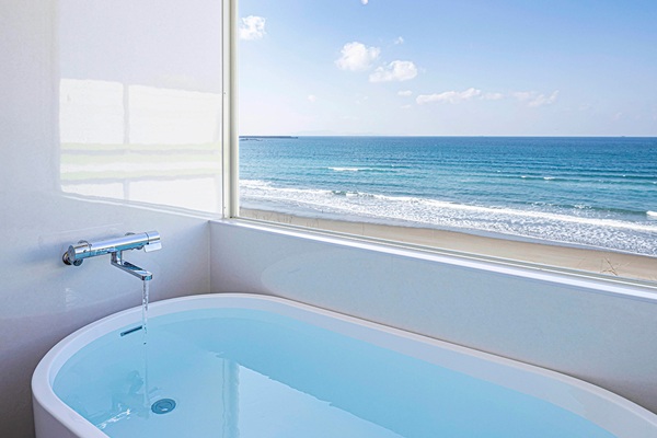 - 浴室は海側ガラスばりでオーシャンビューを楽しみながら入れる