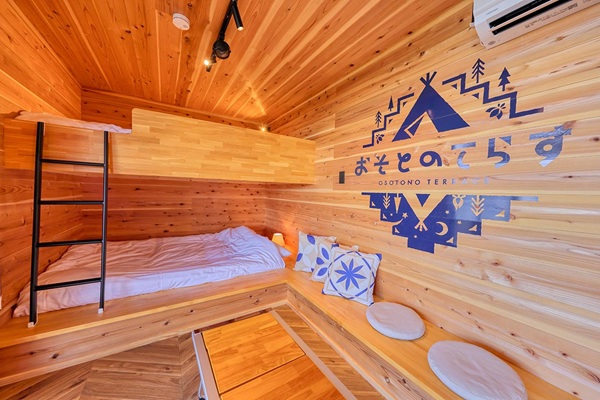 | トワイライト(アウトドアサウナ付き) | 2棟 | 最大8名(お子様含む)/各棟ダブルサイズの2段ベッド ※寝具追加不可 |