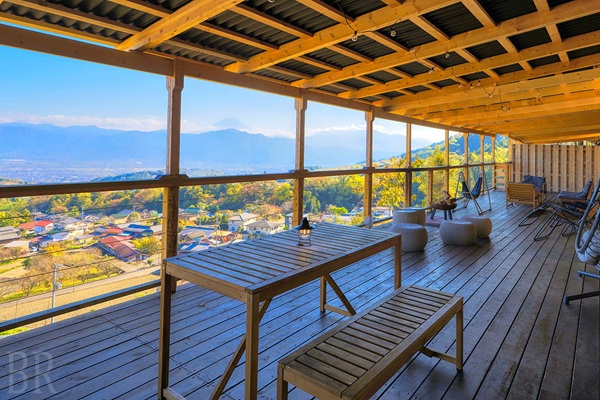 施設内は自然素材を基調としたデザインで統一され、温かみのある照明と開放感のあるテラスが印象的。日中は山々の絶景、夜は幻想的なライトアップが楽しめます。周辺には果樹園や温泉も多く、観光拠点としても優秀。特に春の桃の花や秋の紅葉シーズンは、絶景とともに人気が高まります。
