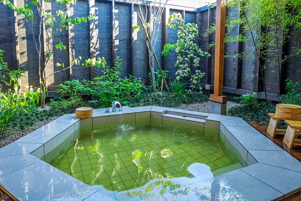 温泉好きには、貸切で利用できる天然温泉もおすすめです。完全予約制のプライベート温泉では、ゆったりと湯に浸かりながら心身ともにリフレッシュ。外の自然を感じながら楽しむ温泉体験は、ホテルでもキャンプでも味わえない“グランピングならでは”の贅沢です。