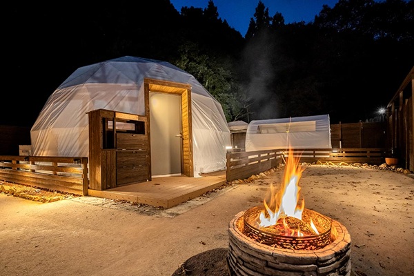 🔷 全棟ドーム型テントで、非日常感と快適性を両立